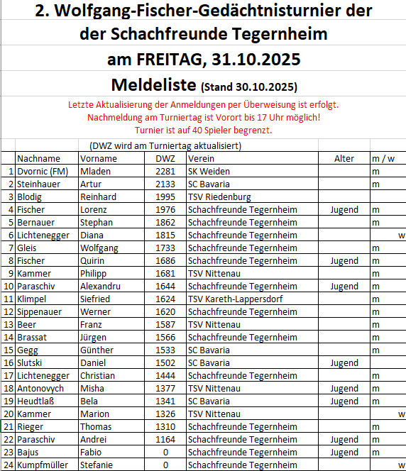 2. Wolfgang Fischer Gedächtnisturnier am Freitag 31.10.2025